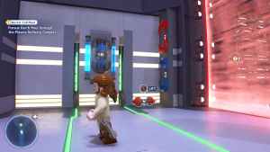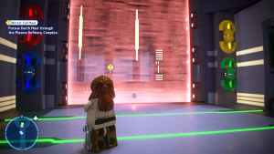 After crossing two barriers, you will reach a third that is broken. Connect the batteries with the matching inputs using the Force.