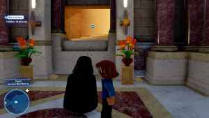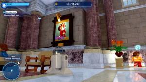 After entering, you'll search for paintings of Queen Amidala and destroy them. Below the paintings are handles. Break them both and have the characters hang from them. The hidden door in the back will then open. There may be a temptation to do the other puzzle inside, but ignore it—it has nothing to do with the Hidden Walkway puzzle.