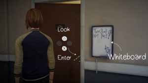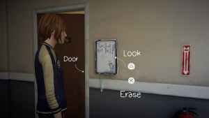 When in the dorms, you will see Eliot's room immediately to the right. In order to have the chance to change his whiteboard, you will need to enter his room and look at the journal that is in his desk draw. You can also peak at his computer.