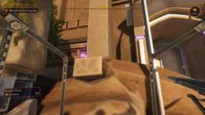 The second Artifact is found on one of the pillars near the front door. Approach the front door and exit your mech. Climb the rocks on the left to reach this Artifact.