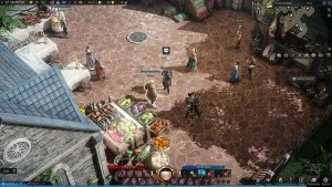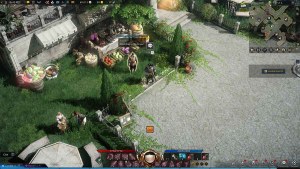 The image on the bottom left is Albaro, the first vendor, who sells Sirloin for 1,500 Silver. Albaro is located next to the largest stall with all the vegetables. The second vendor, Enoch is on the bottom right. Enoch sells Luterran Courtesies for 4,000 Silver. There is a small stall next to him with noticeably fewer vegetables.