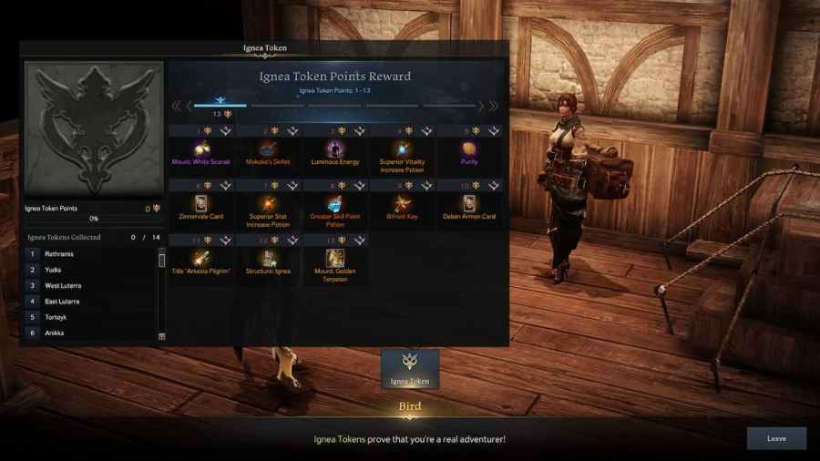 In Lost Ark, you get Ignea Tokens by completing 100 percent of your Adventurer's Tome in a continent. There are a total of 14 Ignea Tokens that can be gained, but only 13 may be obtained. Once you complete an Adventurer's Tome, head to Prideholme and speak with Bird in Neria's Tavern to claim your reward. Another Ignea Token NPC can be found in Castle Luterra.