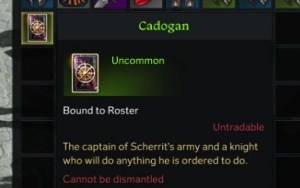 If you hover over an item or equipment and it says Bound, it means you cannot give it to another character on your Roster or trade it. Roster Bound items cannot be traded but can be stored in your Roster storage and used by another character in your Roster.