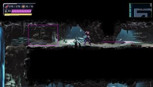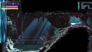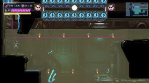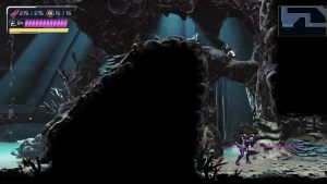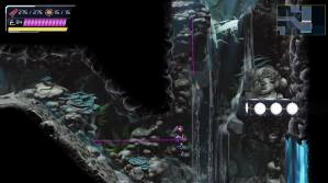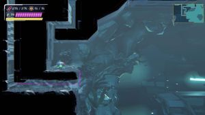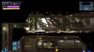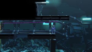 Once that is done, follow the tunnel above you. At the end, you'll see a gap, and three wall Masses you need to shoot. The third one needs the charged up Diffusion Beam to hit. Grapple onto the grapple point, to bring down the massive machine in the background.