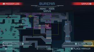Go into the Morph Ball gap, fall through the Pitfall Blocks, and into the Green Teleporter, to take you into Burenia. Once arrived, Bomb the blocks to the bottom right of the screen, and enter the room. Ice Missle the Enky, and go into the room below. To begin another Shinespark.
