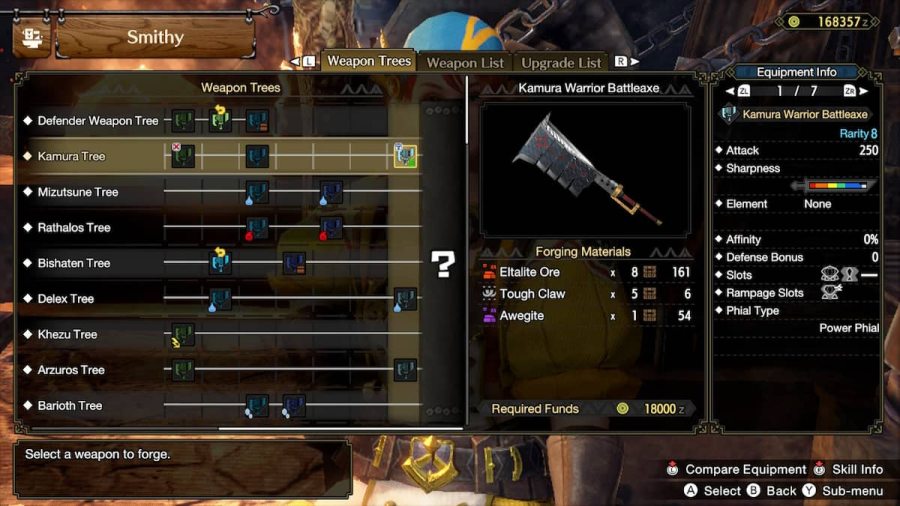 All Weapons have the Kamura Tree by default, and players can make a Rank Eight Weapon almost immediately. Grinding for these weapons won't take much time and can be done in Expeditions. The Ore and Bone Trees are also good choices, but the Rank Eight Weapons won't be available for every Weapon. The required materials for the Kamura Tree Weapon are: