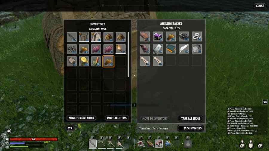 This will make it easier to leave some items behind in storage while only carrying a few for crafting or taking with you on your journey. However, if you drag them back over with the other stack, items will automatically conjoin again, but I would suggest always leaving some in storage rather than carrying it all in your Inventory anyway. You can even move the storage close to a crafting station for easy use.