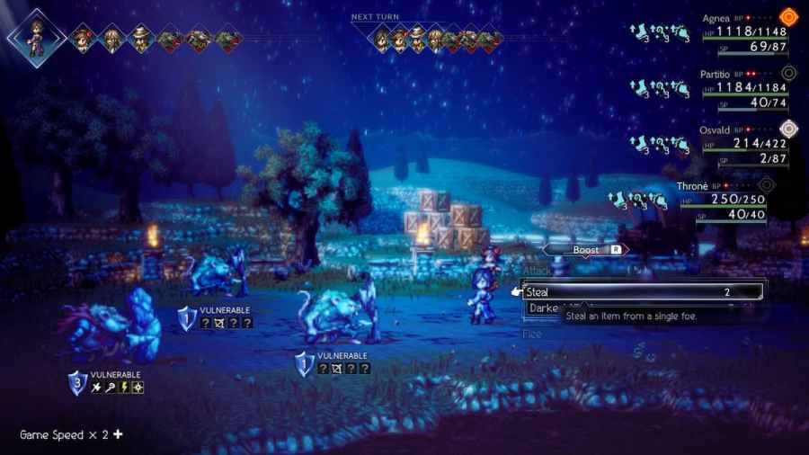 The lower your target’s HP is, the easier it is to steal an item as well. Finally, remember to use Steal when your opponent is unconscious with a broken shield for the turn. This increases your steal chance massively! Boosting the Steal skill before it’s used can also increase your steal chance.