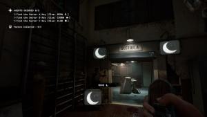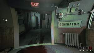 Going left to get to the generator is much faster, but you'll need to get through two doors you need to hold open. If you're playing solo, you'll have to drop the can, crouch under it while the door is open, and then grab it before it closes. Behind the door are some items you can pick up, and if you're playing with a group, you'll want to make sure the person not holding the gas can picks up the most. Because the outside area is so brightly lit, stealth is trickier. You'll want to go into the dark rooms to hide or loop around before walking through Sector B.
