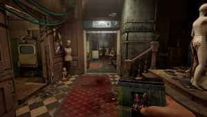 The area on the left leads to an open courtyard with a building on the left and right side where the bleach can spawn. The building on the left has no light until you shift toward the right and has a hole in the bathroom to loop enemies around. The building on the right has a swimming pool and a few rooms surrounding it that lead back into the building on the left. You'll be taking advantage of the holes more than anything if you're looping around whenever you're caught. If you're playing solo, you might want to take bottles with you for these areas.