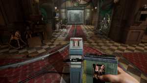 The other area is to the right of the soup and has an upstairs and downstairs area. They both connect at some point, with the upstairs being a dark chapel and the downstairs being a storage area. The chapel is easy to crouch and hide in while carrying bleach, but there aren't many places to go if caught. This can lead to dropping the bleach, finding a place to hide, and returning to a room full of enemies. In a team, this is a lot easier, but in solo, this may require going downstairs to make noise and then going back to the chapel after they are led away.