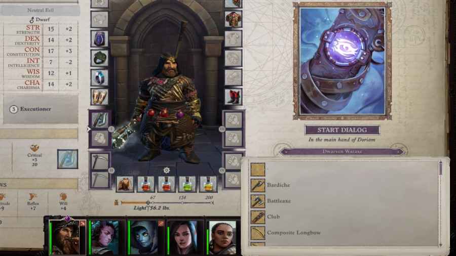 Eventually, you'll come across a talking weapon companion in Pathfinder Wrath of the Righteous. The character's name is Finnean and they act as both a nonparty companion and as a powerful weapon that can level up as the player levels them up through their story quests.