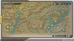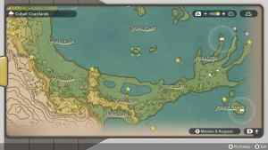 Coronet Highlands is arguably the most difficult map to navigate. As its name implies, everywhere is surrounded by cliffs. Fly on Braviary to reach your destinations. If you get blocked by a cliff, climb with Sneasler and take off again from higher ground. There are 20 wisps in this area.