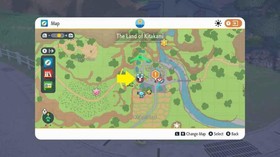 Blood Moon Ursaluna is one of the rarest Pokémon in Scarlet and Violet, and is only available through the Teal Mask DLC. To get this Pokémon, you must speak to Perrin, the girl with the camera on the west side of Mossui Town. She can be found here, shown in the image below.