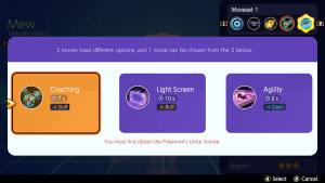 At level three, Mew will learn either Coaching, Light Screen, or Agility. Coaching gives allies a Shield for three seconds, 40% increased Basic Attack Speed for two seconds, and can be used repeatedly on allies who haven't been coached within seven seconds of each other. Whenever it is used, the cooldown for Mew's first move is reduced by one second. Light Screen will buff Solar Beam, Electro Ball, and Surf when the move passes through the screen. It also decreases Mew's damage by 25% and can act as a wall for enemies. When used and activated again, Light Screen will be pulled towards Mew and follow them around for four seconds. Agility is the simplest of the three moves and allows Mew to dash. It has two charges, a six-second cooldown, and gives Mew a 20% Movement Speed buff.