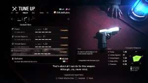 The Sentinel Nine has a very high magazine size even before upgrading in Resident Evil 4. The handgun is easy to upgrade early on and does a decent amount of damage with each shot. For an early game weapon, it isn't too bad. However, Leon's starting weapon, the SG-09 R, begins to outshine it in damage fairly quickly. The Punisher is also an option fairly early on and can be compared to the SG.