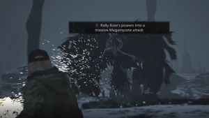 Once you have a full Megamycete power bar, you can use the power to send Mother Miranda on her way to the afterlife. To use the Megamycete power you just gained, press the G key or console equivalent. Pressing G will cause Rose to send a tree sprout attack that will damage Mother Miranda, as shown below. However, before using the special Megamycete power attack, ensure Mother Miranda is close enough to you.