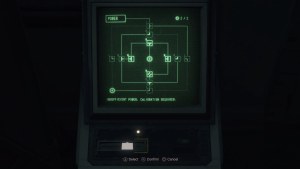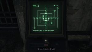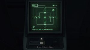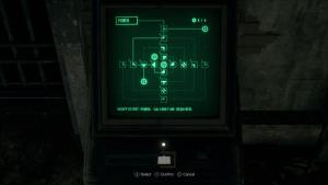 The final puzzle of the game is in the Waste Disposal after rerouting power again with Ashley. The solution for Assisted/Standard is on the left, and the solution for Hardcore/Professional is on the right.