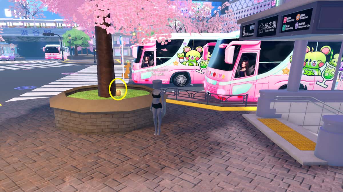 You can find a golden Easter Egg underneath the pink sakura tree right at the entrance of the tunnel that leads to the subway.