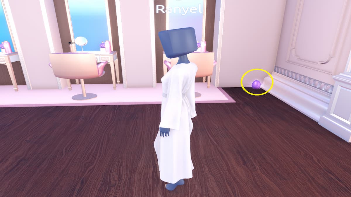 There is a purple Easter Egg on the edge of Lana's Salon next to the makeup table.