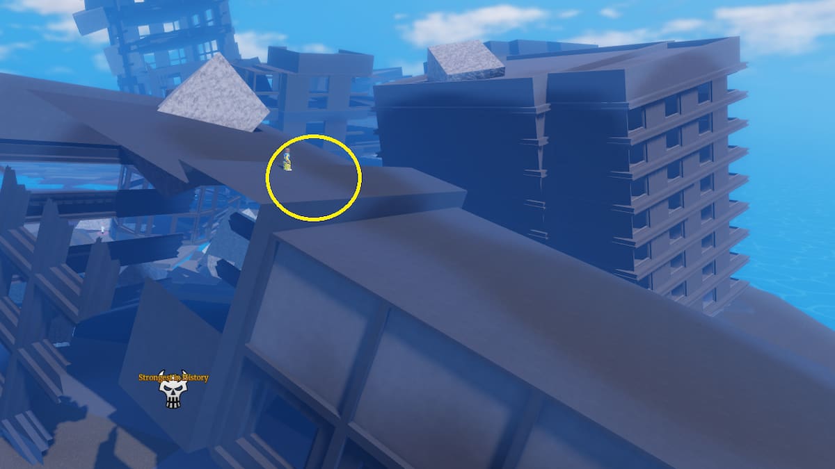 On Slime Island, in front of the teleporter, you will find a small building. Check the first-floor balcony of this roof to find an Ancient Fragment in Sailor Piece.