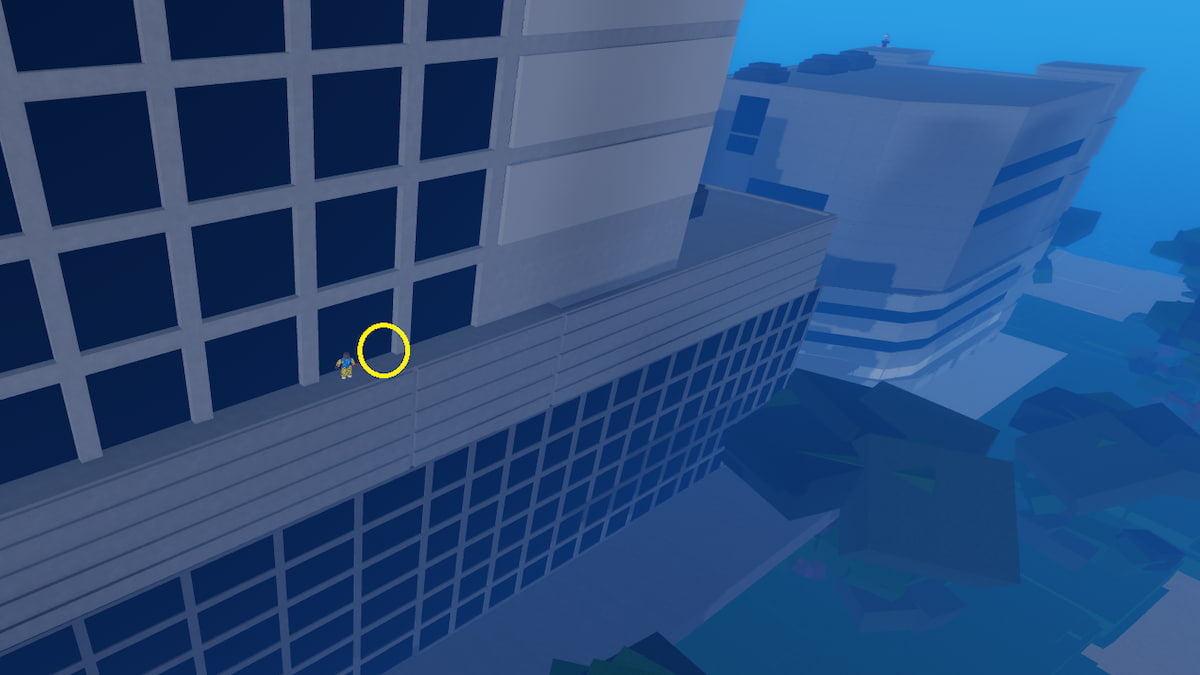 On Shibuya Island, go towards the left side of the area to find a large building next to the beach. Climb and check below the fourth glass panel to find an Ancient Fragment. This building is adjacent to the building where you can find the Cursed Trainer NPC.