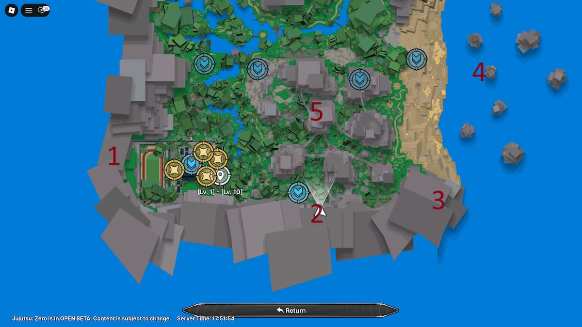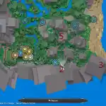 4Location: After collecting the chest from the mountain at the bottom edge of the map, go to the beach and head towards the rocks within the sea. Go to the rock numbered 4 in the image below and climb up to the top. You’ll need plenty of Air Jumps to climb up to this chest, so make sure you progress as much as you can in the Air Jumps section of the Vitality tree.