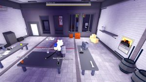 - Keep going straight until you see a door on the left. Once you enter this room, click the yellow button for the elevator door to open, then press the blue button once you're inside.