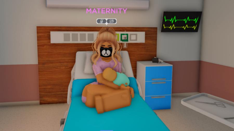 When you're ready to have the baby, head to any open hospital bed and step onto it to lay down. Once there, you can control your avatar's position using the bed's remote and can use your imagination to pretend you're delivering.