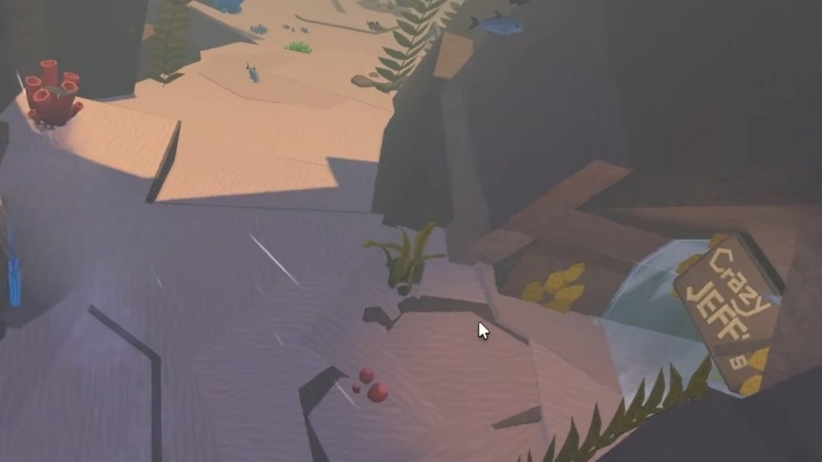 At the center of this zone, you’ll spot a massive, bridge-like natural structure (a large stone arch with a big tunnel/passage beneath it). Head into that tunnel, and at the very bottom, you’ll find Crazy Jeff’s Shop.