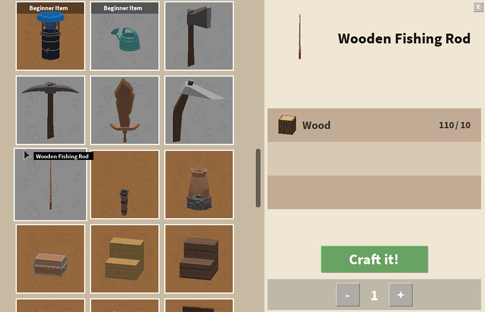 - Craft a Fishing Rod You will need to have a Workbench for this, so make sure to have one placed on your island. The fishing rod requires 10 wood, so chop down some of your trees to obtain it! Once you have the wood, head over to your Workbench and craft it! Add the fishing rod to your toolbar so you can use it easily.