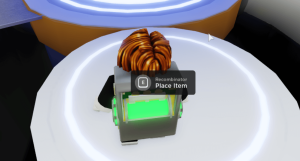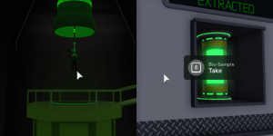 When you first enter the game, choose Scientist when it gives you the option to select your role. You need to be a scientist to use a Bio-Sample dispenser later when you're collecting objects. Speak to Sparks to begin the quest. Then, go over to the green button and press it to open the door to the elevator. Go down to the underground base and find the Hologram of Sparks in the Recombinator Room.