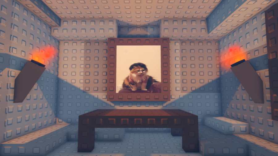 The find chubby badge is hidden inside a secret room that's dedicated to an adorable cat, presumably named Chubby, and luckily doesn't require much work to obtain. Once you've spawned into Carry Me, look for the broken bridge pictured below and walk toward it, stopping just before its edge.