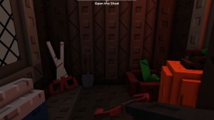 - While still in the shed, use your Grabby Arm and pick up the shovel standing at the back of the shed.