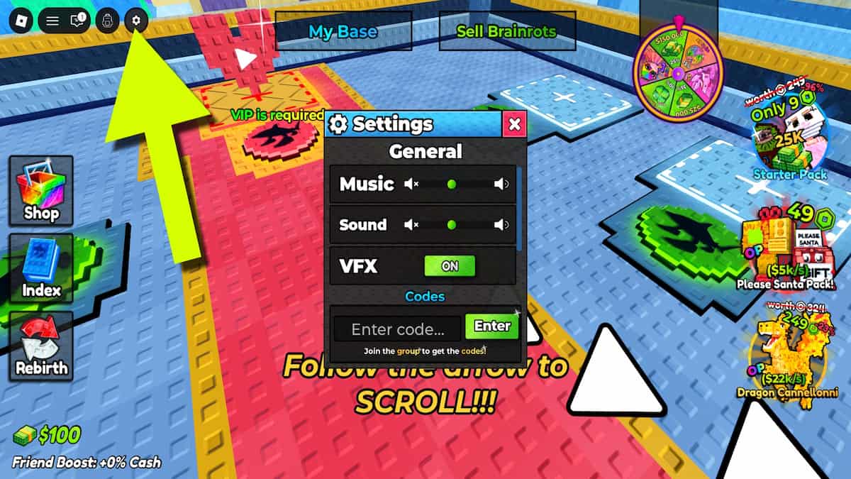 Take a look at the tutorial below to learn how to use Scroll a Brainrot codes: