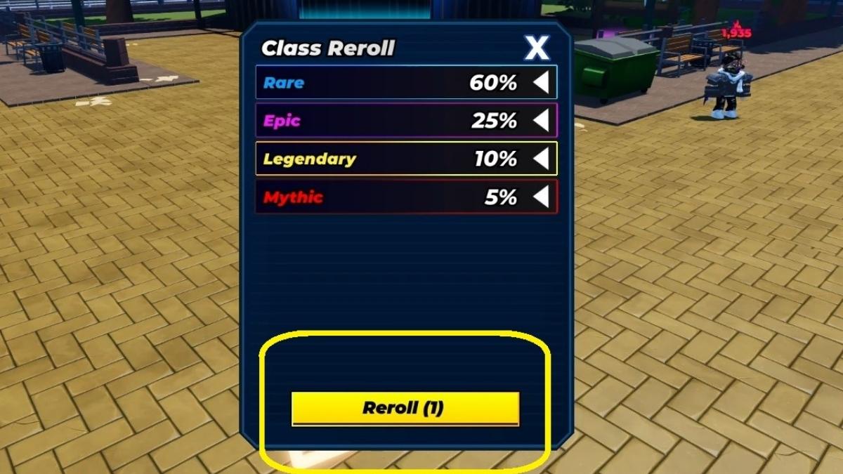 - If you have available rerolls, click the yellow Reroll button at the bottom of the screen to reroll your class.