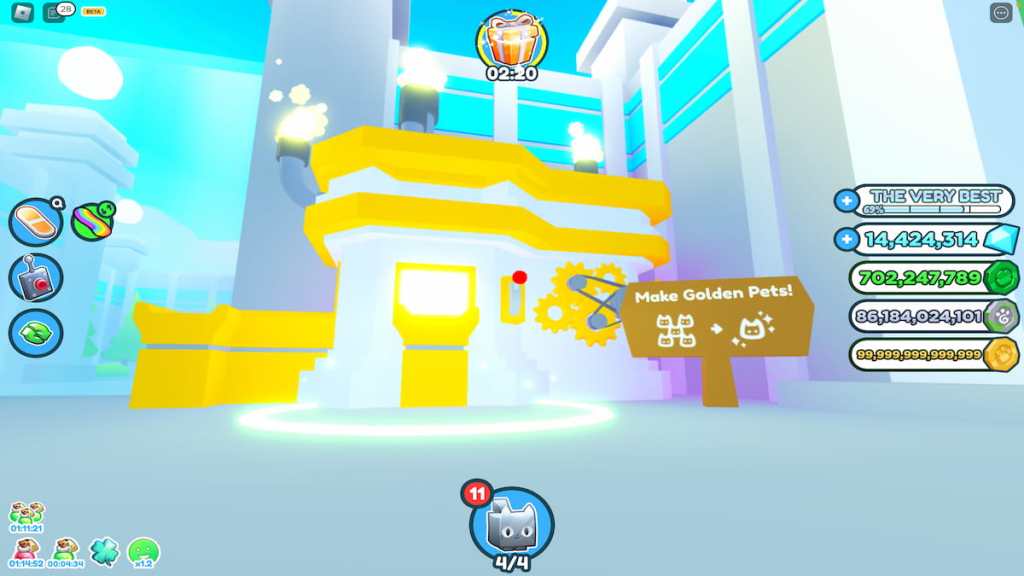 As can be seen from the table above, if you only put one or two of the same pet into the machine, there's a much lower chance the process will be successful; on the other hand, if you put five or six of the same pet into the machine, you're almost guaranteed to get a Golden pet in return. Whether the process succeeds or fails, you'll lose all the pets you input into the machine when it finishes, so be sure you want to transform them before you start!