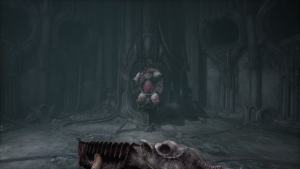In Act V, players must gather blood to then inject into two bodies that are attached to a machine. When collecting the blood, they will encounter a boss fight. After the fight, the parasite that has been attached to the player since Act II will completely cover their hands, forcing them to use a machine to cut their arms so they may use their hands for a short time. Players will eventually find an extraction machine that they must use to remove the parasite entirely, freeing them and their hands to continue through the rest of the level.