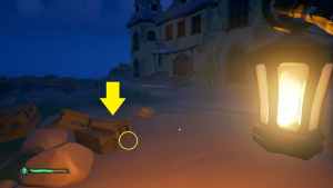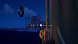Moving on, we will be completing Prison Break. Make your way from the docks to the Mêlée Island jail. Look on the table inside the jail and pick up the Claw Hammer. Return to the docks and find the sunken ship on the far side. Its mast will be visible above the water.