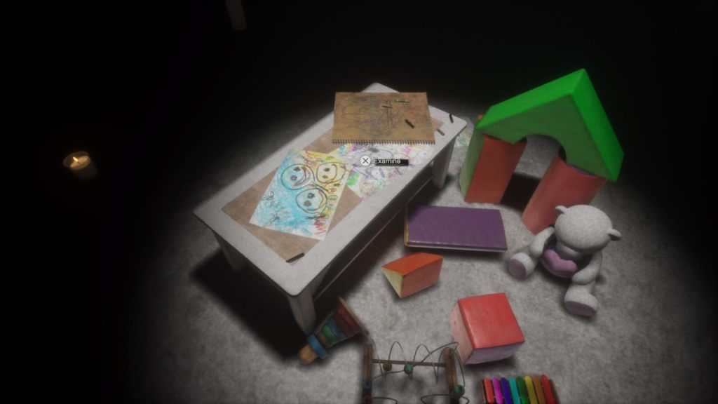 To the left (after the cutscene), you can interact with a note about child abuse on a wooden cabinet. Head deeper into the sticky note rooms to find a bedroom; there is an interactable on the side table by the bed for the antidepressants. If you continue deeper into the rooms, a door to a bathroom will open up; interact with the razor on the sink to see a disturbing cutscene of someone cutting themselves.