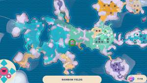 In Rainbow Fields, you'll find a cave entrance blocked by a big Phosphor Gordo Slime. The cave's location is marked in the map above. Before heading there, carry lots of fruit, such as Cuberry and Pogofruit, in your inventory. Now approach the Gordo Slime and feed it fruit until it explodes and clears a path for you.