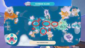 You can easily find fruits and veggies of different kinds in the Rainbow Fields area. Head east of The Conservatory and you'll find these resources in abundance. Carrot is the most readily available vegetable and Wild Lettuce is hard to find in this region. As for the fruit, you'll come across numerous Pogofruit trees and some Cuberry trees. Make sure to check underneath the trees as well. Here's a list of some of the slime types that consume fruit and veggies: