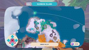 The first and more tedious way is by taking the portal at the west end of Rainbow Fields to Ember Valley. After reaching the new island, head towards the point marked on the map to reach a cave. You will have to climb certain cliffs using the geysers. Following the cave will lead you to yet another geyser. Use the geyser and Jetpack to boost yourself up through the hole on the cave roof.