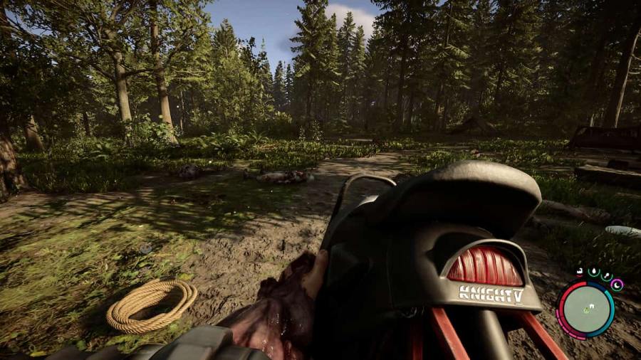 The Knight V can be placed in any location in Sons of the Forest by dropping it, but it can't be stored away. It will have to stay outside and be picked up to ride. With the Knight V in hand, using Left Click will have the player mount it. From there, it can be ridden at high speeds nearly anywhere but large bodies of water. Dismounting just requires the player to jump twice, but it's possible to be knocked off when bumping into trees or walls at any point. Jumping a single time will allow players to hop and even off of large cliff edges, there is no fall damage while riding it.