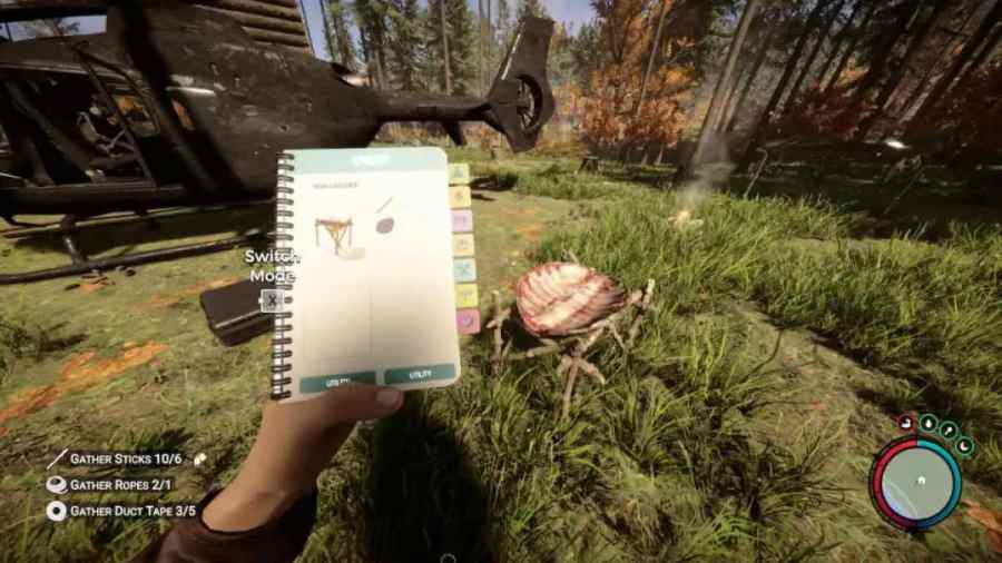 - Find a suitable location to create a fire. Gather the necessary resources, such as sticks and leaves, and craft a fire using your survival skills.