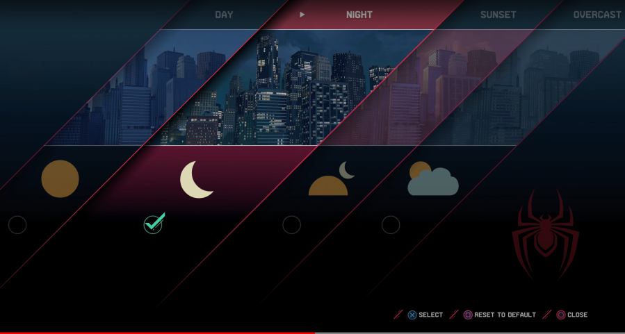 Update: It seems that the change of day function only works for the PlayStation 5 version. From the comments of this article who have 100% Miles Morales on the PlayStation 4, the option does not come available. It's only for the PlayStation 5 version.
