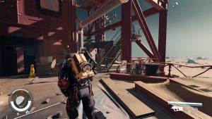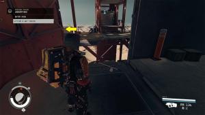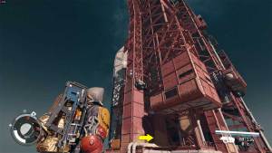 Land near the NASA Launch Station on Earth and try to reach the elevator marked via the objective indicator. You can enter the launch station by climbing up the pipes next to the elevator shaft as I've shown in the second image. Use the stairs on the other side to reach the section above you. Once there, carefully walk on the pipes and reach the other side of the platform where the elevator is.