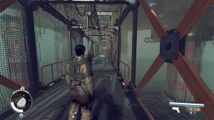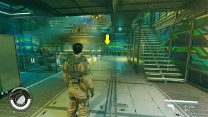 First of all, open the Starmap and go to the screen with all the star systems. Select Volii, set course to the planet Volii Alpha, and make the jump. Land your ship on the city Neon Core and make your way to its central section. Walk down the bridge shown in the third picture, through the security checkpoint, and into the Terminal elevator, which will take you to the Neon Upper Platform.
