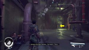 After you're out of the elevator, you'll see a big dragon poster in front of you. From here, turn around to your left and you'll see another elevator that says Ebbside. This elevator will take you to a different section where you'll immediately spot Madame Sauvage's Place. Take the elevator inside to reach the bar, inside which you'll find Andrea Sandoval in a corner (see third image). Talk to her and ask her to take you to Briggs, the leader of the Ebbside Strikers gang.