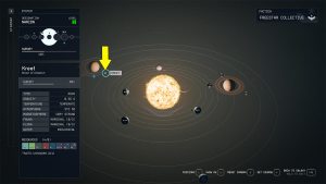 As of now, I've managed to find Alkanes at two different locations in Starfield. The first place is Kreet—the moon of planet Anselon in the Narion star system. Alkanes are a rare resource on this moon, so you will not come across many vents. However, you can land on the spot I've shown in the third picture, as I found a few Alkanes deposits there while exploring. Simply scan the resources (R), mark the landing spot, and land (X) your ship there.